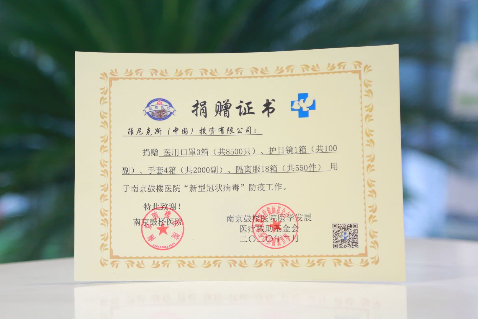 以菲尼克斯员工捐款采购的首批医用物资,定向捐赠给南京市鼓楼医院和湖北省孝感市第一医院。