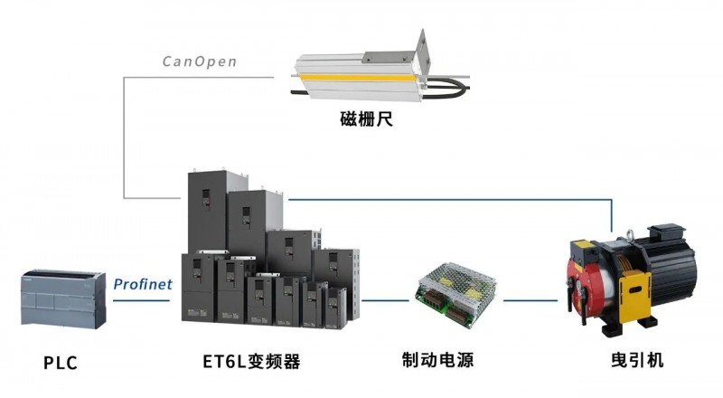 • 曳引机正余弦编码器作为速度环,磁栅尺位置反馈作为位置环,接入变频器内部实现双闭环稳定控制。