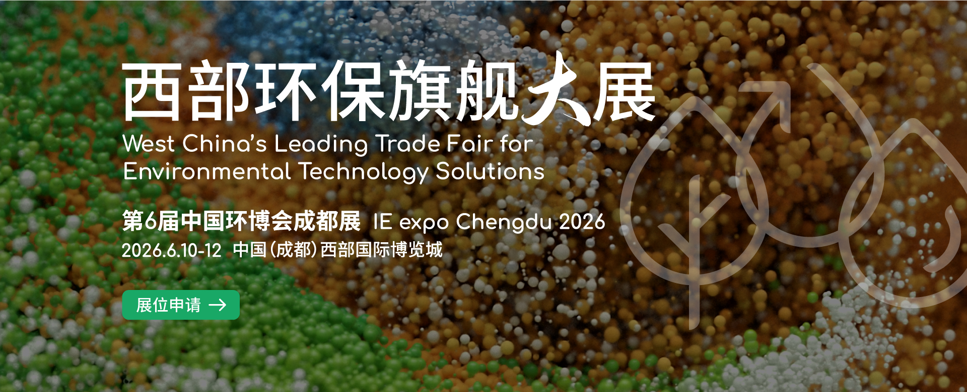 2019 年起,中国环博会正式进驻成都,为世界旗舰环保展慕尼黑IFAT 展拓展了中国中西部版图。中国环博会成都展已连续成功举办五届,已发展为中西部极具影响力的旗舰环保展,见证着中西部环保产业向新、向绿、向稳推进。 成都作为西部地区主要城市,地理位置优越,辐射性强,正引领着西部城市快速崛起。成都的环保产业显现出巨大的市场潜力和发展前景,近年来越来越多环保企业以成都为中心,构建起中西部业务矩阵。 2026年第6届中国环博会成都展将在成都西部国际博览城举办,展会将围绕各大细分领域、打通全产业链、发挥“高品质展示、高效率交易、强品牌影响力”的优势,为企业提供一站式交流平台。