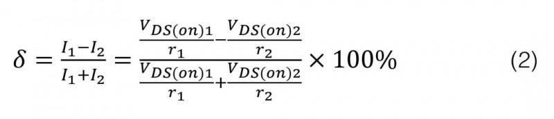 实际应用中,为了满足预想的静态电流不均衡率(比如5%),可以根据式(3)反推其通态电阻差异Δr(或通态压降差异ΔVDS(on)),然后根据出厂测试报告来挑选适合并联的器件。