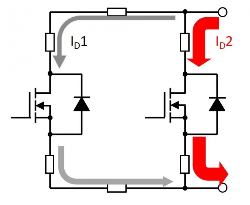 图1:VDS(on)引起的稳态电流(di/dt≈0)不均衡