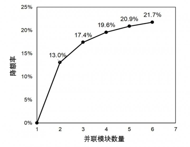 图4:并联模块数量和降额率之间的关系(电流不平衡率为15%)