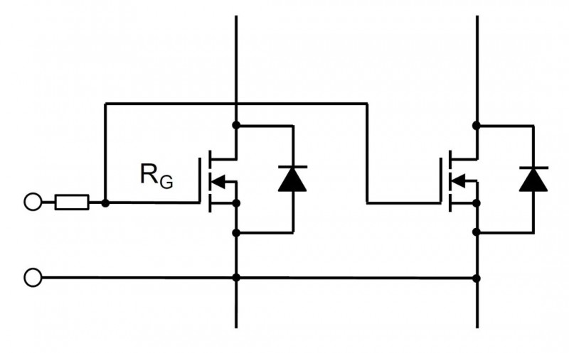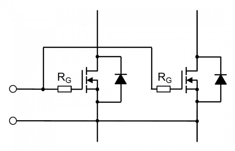 推荐每个并联模块使用独立的栅极电阻,如图2所示,可避免栅极振荡。