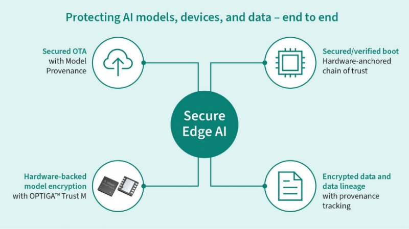 通过存储在英飞凌防篡改安全控制器OPTIGA™ Trust M中的加密密钥,Thistle将其解决方案的范围扩展至设备端AI模型和数据内置保护。新推出的Thistle安全边缘AI解决方案具备三大核心特征: