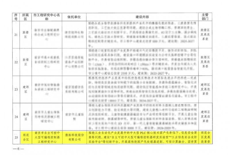为深入实施创新驱动发展战略,强化科技创新体系建设,南京市发改委组织开展了2025年南京市工程研究中心的申报与评审工作。经严格审核,全市共69家单位获得立项,涵盖低碳、智能制造、信息技术等多个前沿领域。傲拓科技申报的“自主可控中大型可编程控制器工程研究中心”聚焦工业控制核心装备的研发与产业化,契合南京市推动产业强市、加速科技成果转化的战略方向。