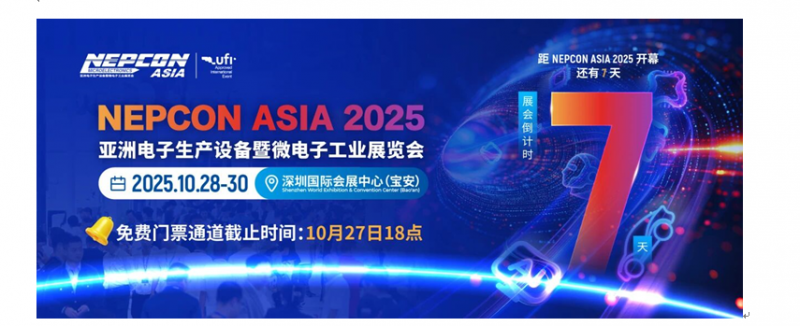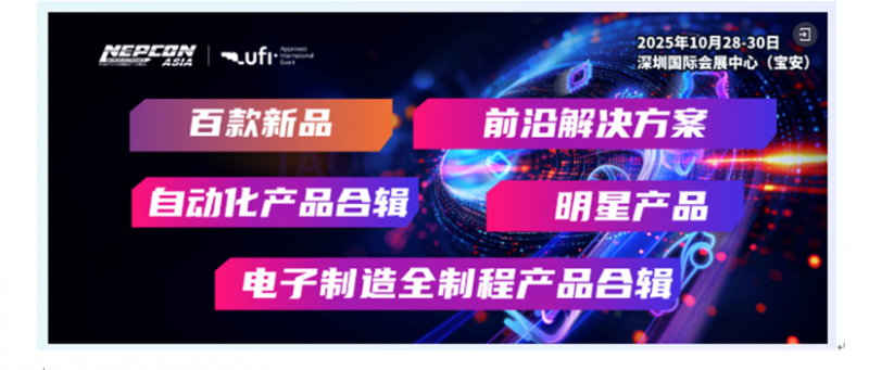 作为电子制造专业展会,NEPCON ASIA亚洲电子展将于2025年10月28-30日在深圳国际会展中心(宝安)盛大举办,预计汇聚来自全球超过600家全球电路板组装、智慧工厂、半导体封测、汽车制造、触控显示等跨行业先进生产设备及技术供应商,全面展示创新产品和先进电子电路制造技术,是企业学习新技术,发掘新产品,探索新趋势的电子制造行业盛会。