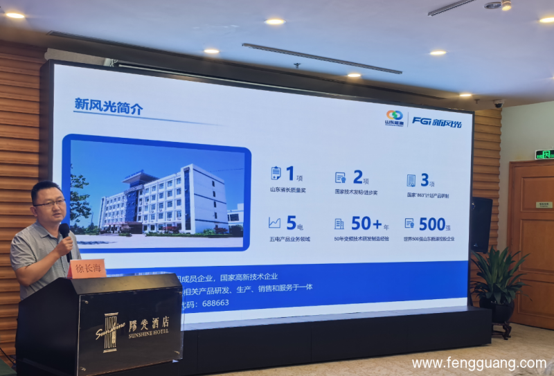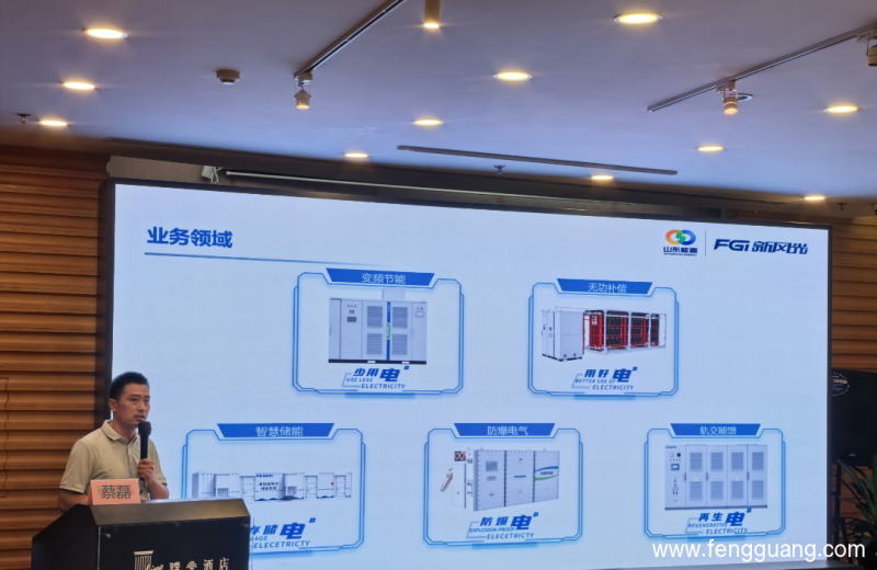 会议期间,新风光市场经理蔡磊做《石化行业全域节能可靠性解决方案》的主题演讲,结合石油化工企业存在的大量电机类负荷多,可靠性要求高、电网质量要求高等问题,分类阐述了新风光最新研发的关键技术成果——带无功补偿功能的变频器、高压储能变频器、高压电机变频一体机等创新性解决方案等。
