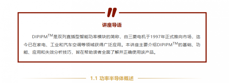 由图5可以看出,功率半导体器件进化的大致方向按照不可控制→电流控制→电压控制;从小功率→中功率→大功率→超大功率;从分立器件→功率模块→智能功率模块→双列直插智能功率模块这几条主线进行。三菱电机作为知名功率半导体器件制造商,一直致力于功率半导体器件的模块化、智能化,从上世纪90代起先后开创了智能功率模块IPM、DIPIPMTM等领域,为功率半导体行业的发展做出了巨大贡献。 在接下来的章节中,我们将重点围绕三菱电机DIPIPMTM产品及应用进行详细介绍,下面的内容更精彩,敬请期待!1)功率半导体器件是用来对电能进行转换,改变电力变换装置中的电压或电流的波形、幅值、相位、频率等参数的一种半导体器件。2)整流二极管、双极型晶体管、晶闸管、GTO、功率MOSFET、IGBT、IPM、DIPIPMTM都是目前被广泛应用的功率半导体器件。3)功率半导体器件的工作方式与其在电路拓扑中所处的位置密切相关。4)IPM、DIPIPMTM是一种新型功率半导体器件,由IGBT进化而来,是比IGBT更高层次、功能更为强大的复合功率半导体器件。