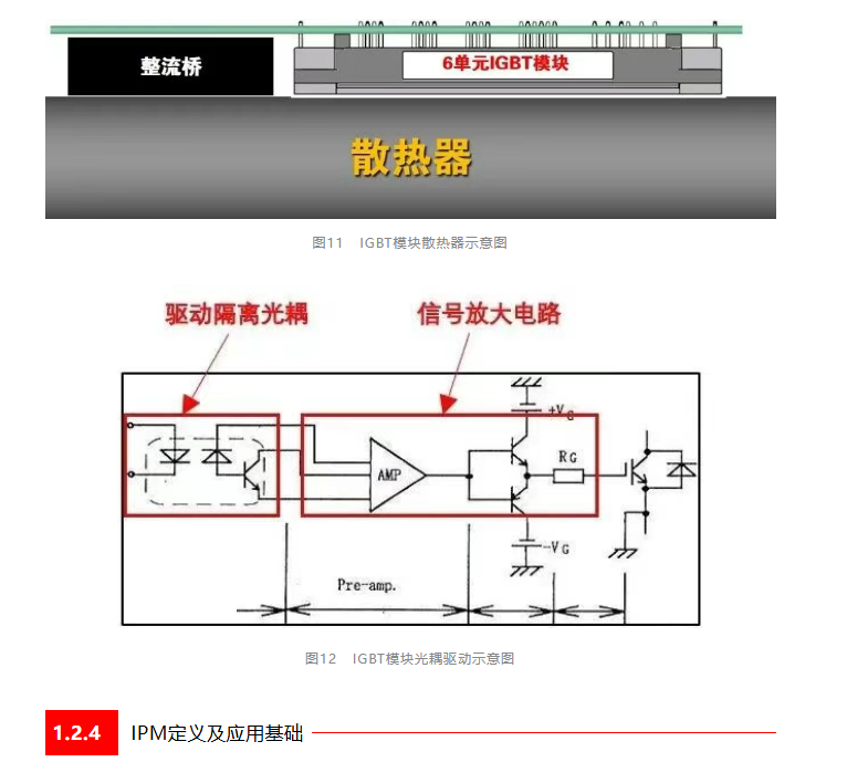 相比较分立IGBT,采用IGBT模块的电力变换装置在集成度、结构的紧凑性、安装的维修便利方面有了很大提高,同时由于内部封装的多个IGBT共用同一散热器,因此在散热器设计方面,与分立IGBT相比难度较低,由图11可以看出,整个IGBT模块可以和整流桥共用一个散热器,散热系统简单、紧凑。但在驱动电路设计方面与分立IGBT相比没有明显改善,图12是光耦驱动的IGBT模块的驱动示意图,IGBT模块驱动需要设计较为复杂的驱动及保护电路、需要较长的设计及验证时间。在发生过流、短路、欠压、过温等故障时,若不能及时保护,IGBT模块会发生损坏,严重影响电力变换装置的可靠性,这也限制了IGBT模块在某些需要高可靠性领域的应用。