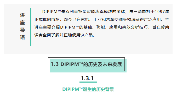 作为小功率变频应用的主流器件,DIPIPM™的技术还在不断发展。一方面是基于现有的Si衬底的IGBT芯片性能会取得进一步的提升,另一方面,相较于Si材料,SiC材料的禁带宽度更大,在击穿电场强度、饱和电子漂移速率、热导率以及抗辐射等关键参数方面有显著优势。基于这些优良特性,SiC器件可以满足高温、高压、高频、大功率等条件下的应用需求。尽管现在SiC衬底成本高昂,并且由于后续晶圆制造、封装良率较低,导致SiC器件整体成本仍处于较高水平。未来随着全球半导体厂商加速研发及扩产,生产工艺和技术日趋成熟,将有效降低SiC器件成本。基于SiC技术的DIPIPM™也将会逐步批量使用,以其远优于Si材料的特性来实现大幅节能和安装产品的小型化、轻量化。三菱电机早在20多年前就开始了针对SiC技术的研究。在2000年研发出多种基于SiC的基础工艺技术,此后三菱电机SiC功率器件在不同的应用领域中先后树立了丰碑。早在2010年三菱电机就向市场上推出了混合型SiC DIPIPM™,应用于变频空调中;并于2016年将基于三菱电机第2代SiC MOSFET*6芯片技术的全SiC DIPIPM™产品实现了商业化应用,获得了客户的好评。目前,三菱电机即将完成第3代沟槽栅型SiC MOSFET芯片的研发工作,相信不久的将来基于此新一代SiC MOSFET芯片的DIPIPM™产品也会面市,以满足客户对更好性能的追求。未来三菱电机将持续保持对SiC技术的深入研究,把“Changes for the better”的企业理念化为实际行动,践行“精于节能,尽心环保”的绿色研发生产,为社会的可持续发展和节能减排贡献力量。在接下来的章节中,我们将重点围绕三菱电机的DIPIPM™产品和应用等方面进行详细介绍,下面的内容更精彩,敬请期待!
