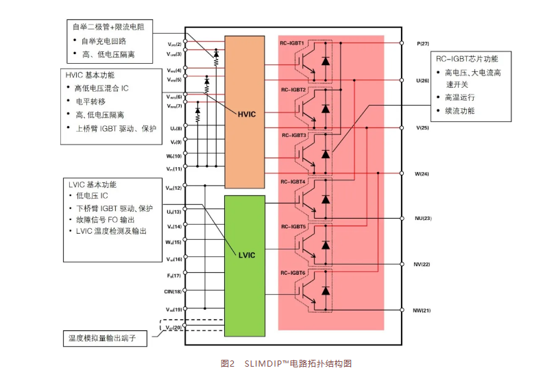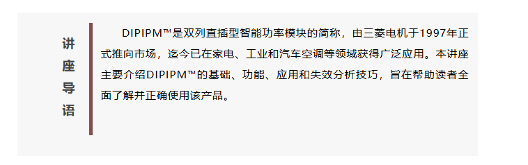 正如第1讲中曾经介绍的那样,功率半导体器件是电力变换系统的核心器件,主要功能是对来自电网的固定频率、电流、电压的电力进行转换,使之成为可根据负载要求任意变换的电力形式。DIPIPM™作为一种典型的功率半导体器件,在电力变换系统中的主要功能同样是电力变换,这种功能也可以认为是DIPIPM™的系统功能。为了实现这个系统功能,DIPIPM™需要一定的电路结构进行匹配,这种电路结构反映了模块内部的电子元器件的电路连接形式,通常这种连接形式又被称作电路拓扑结构。DIPIPM™最常见的拓扑结构是全桥逆变结构,这种结构可以把固定的直流电变换成为任意波形的交流电,这个逆变结构通常包含6个IGBT芯片、6个反并联二极管以及用于驱动保护的控制IC。与拓扑结构相对应的是DIPIPM™的产品结构,DIPIPM™作为一种复合型功率器件,其内部既有用于控制保护的逻辑IC芯片,又有用于处理高电压大电流的IGBT、二极管芯片等功率芯片,有些DIPIPM™还集成了自举二极管及其限流电阻,这些元器件需要按照一定的逻辑进行工作,共同完成DIPIPM™的系统功能。这些元器件在工作时不可避免的相互产生影响,如相互之间的电磁干扰、热干扰、机械应力等;同时元器件又会受到环境的影响,如环境的温度、湿度、盐分、化学气体、宇宙射线都会对元器件及它们间的电气连接产生影响,导致元器件失效或寿命降低等。围绕这些问题,DIPIPM™必须设计一定的结构去保护内部的元器件,避免受到其它元器件或环境的影响,同时具有与外部系统可靠连接的引脚形式和安装方式。这样的产品结构必须通过一定的制造工艺来实现,对于DIPIPM™来说,这种工艺就是封装工艺,DIPIPM™采用的是压注模的封装工艺,与壳式封装的功率模块相比,压注模封装具有生产效率高、成本低、可靠性高的优点。总之DIPIPM™的电路拓扑结构、产品结构和封装工艺总是围绕着DIPIPM™的系统功能这个核心进行设计,反过来电路拓扑结构、产品结构和封装工艺极大影响DIPIPM™的功能和可靠性。如果说IGBT芯片是DIPIPM™的心脏,是核心部分,那么DIPIPM™的产品结构和封装就是DIPIPM™的骨骼、肌肉和皮肤,决定了DIPIPM™运行的可靠性和适应恶劣环境的能力。