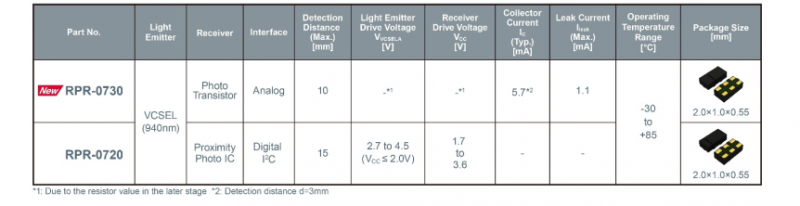 新产品的封装尺寸非常小,仅为2.0mm×1.0mm×0.55mm,并采用可见光截止滤光树脂,可有效抑制照明和太阳光等干扰光的影响。因此,即便在工厂、户外等光环境易变的场所,也能实现稳定的检测。另外,本产品还可轻松安装在需要在狭小空间内安装的设备(比如输送装置内部和精密仪器)中,因此其应用范围更广泛。