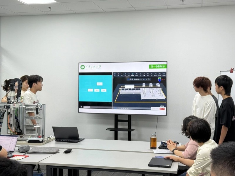实训过程中,项目式学习贯穿始终。同学们以小组为单位,经历工程场景认知、项目目标与任务拆解、程序逻辑设计与算法实现、调试与优化等步骤,最终实现了工作站实机运行与仿真演示。菲尼克斯企业导师与高校教师组成评审组,同学们以小组为单位进行汇报和项目成果展示。