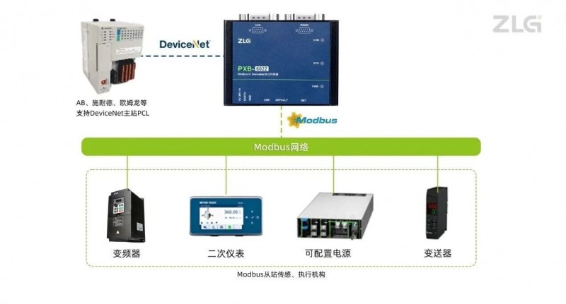 图2 Modbus设备接入DeviceNet网络系统(PXB-6022)