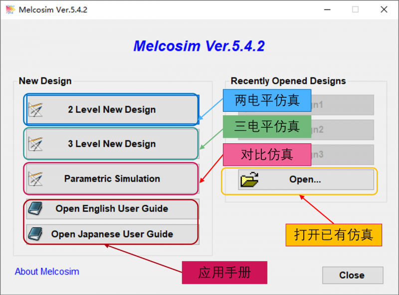 在启动初始界面中会显示软件的有效日期,该日期设定主要是不定期的会有新产品数据录入以及数据更新,建议大家定期更新软件。在确认软件日期有效后,主界面中可以选择不同仿真方式,找到软件应用手册以及打开之前保存的已有仿真数据。