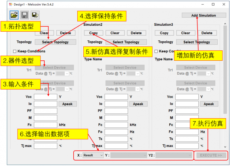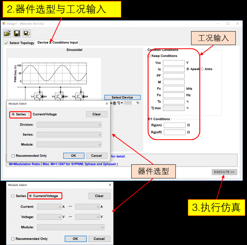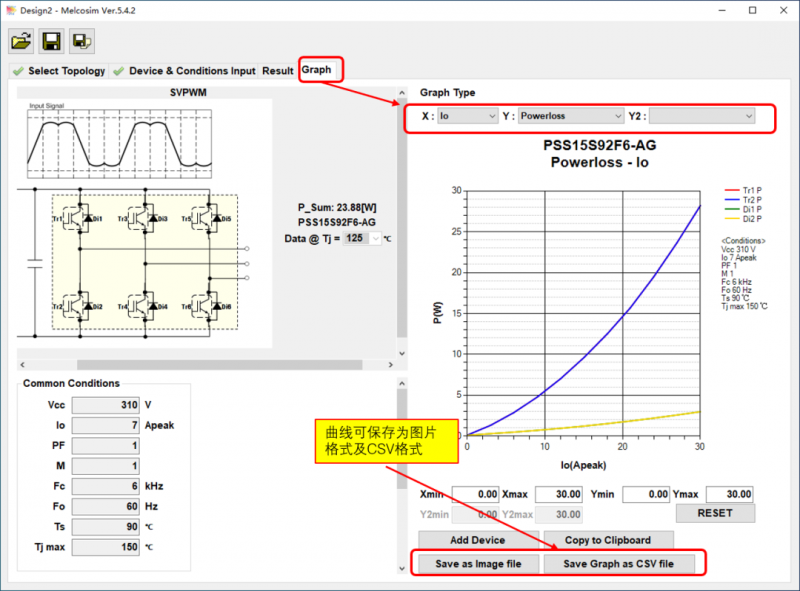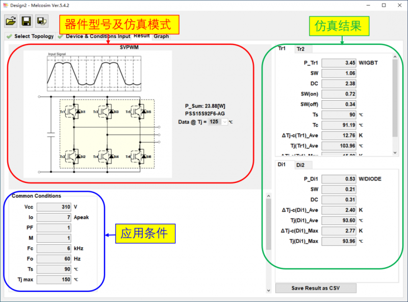 Melcosim Ver.5.4(以及更高版本)是三菱电机专用于其功率器件产品的功耗仿真软件,可以在不同应用条件下对所选器件进行功耗仿真评估。