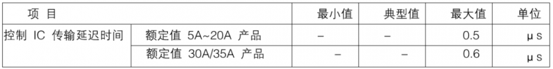 为什么外部短路检测延时时间t1=1.5~2μs呢?是为了防止噪声干扰引起的短路保护误动作,需要在短路检测电路中加入滤波器,应根据噪声干扰的持续时间和DIPIPM™的短路安全工作区(SCSOA)来设置DIPIPM™外部短路检测延时时间。因此,从发生短路动作电流到IGBT栅极关断之间总的时间延迟为:tTOTAL=t1+t2(DIPIPM™外部短路检测延时时间t1=1.5~2μs,t2=控制IC传输延迟时间),下表5为典型DIPIPM™内部IC传输延时时间(以第6代超小型为例)。