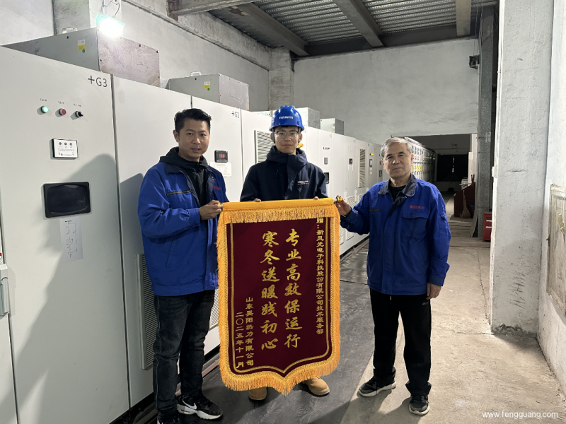 10月的内蒙古霍林郭勒寒风刺骨,鲁新能源开发有限公司临时通知必须在10月4日完成变频器调试。消息来得突然,新风光服务团队深夜接到通知后立即确定行程,凌晨便踏上近二十小时的长途跋涉,于当晚十一点抵达现场,气温已低至零下。为了不耽误工作,工程师们在简陋的办公室借着台灯连夜熟悉图纸,制定调试方案。翌日清晨,他们顶着寒风进入现场,逐项排查接线隐患,进行参数配置、空载测试和负载验证。手指冻僵就哈口热气,睫毛结霜就擦一擦继续盯屏。从早到晚几乎没有休息,简单吃几口盒饭便又投入操作。最终在傍晚完成全部调试,设备运行平稳。现场负责人感慨:“北疆的冬天冷,你们的服务最暖!”