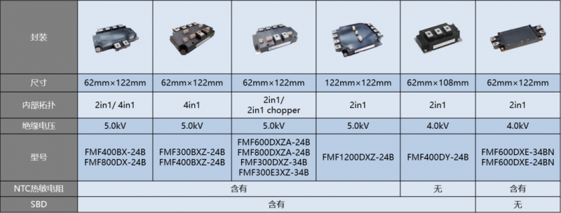 三菱电机于2013年开始量产第一代SiC模块。为了进一步提高工业电源设备的效率,实现小型化和减轻重量,我们开发了第二代工业用SiC模块并已批量生产。第二代工业用SiC模块如下表1所示,包含额定电压1200V和1700V,电流等级从300A到1200A。