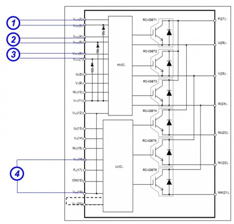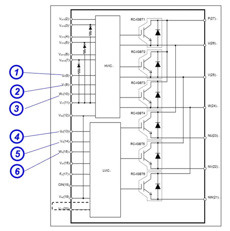 DIPIPM™在变频控制PCB板上的评价则是在单体评价的基础上,需要对DIPIPM™在实际的控制电源及驱动信号的状态下对其功能、性能进行评价,侧重于了解DIPIPM™在实际PCB上与周边电路的兼容情况;