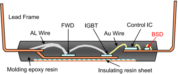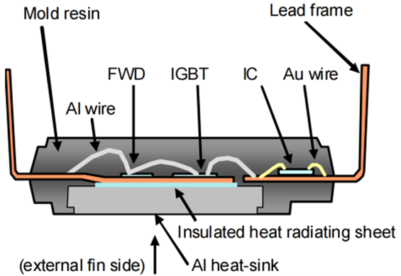 自从2007年的第4代DIPIPM™开始,三菱电机就开始采用绝缘导热垫片作为绝缘散热材料,就像图2这样。绝缘导热垫片本身是一层软性的树脂材料,它在高温高压下和上下两层铜箔“粘合”在一起形成一个整体。这种结构使得DIPIPM™在传统意义下的热循环寿命远远高于功率循环寿命。所以在DIPIPM™的循环寿命评估中只需要考虑功率循环寿命。