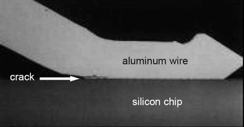如果一颗DIPIPM™能有幸熬过了所有的过压/过流/过热之后,就会像图4那样绑定线接合部开裂而寿终正寝。