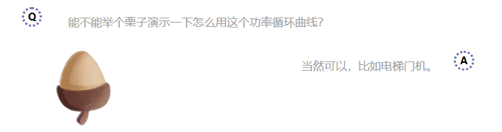 为什么要用电梯门机来解释这个功率循环曲线呢?因为电梯门机是一个工况固定的往复运动。也是少数几个能在实验室里能对主要工况进行完全模拟的工业应用。