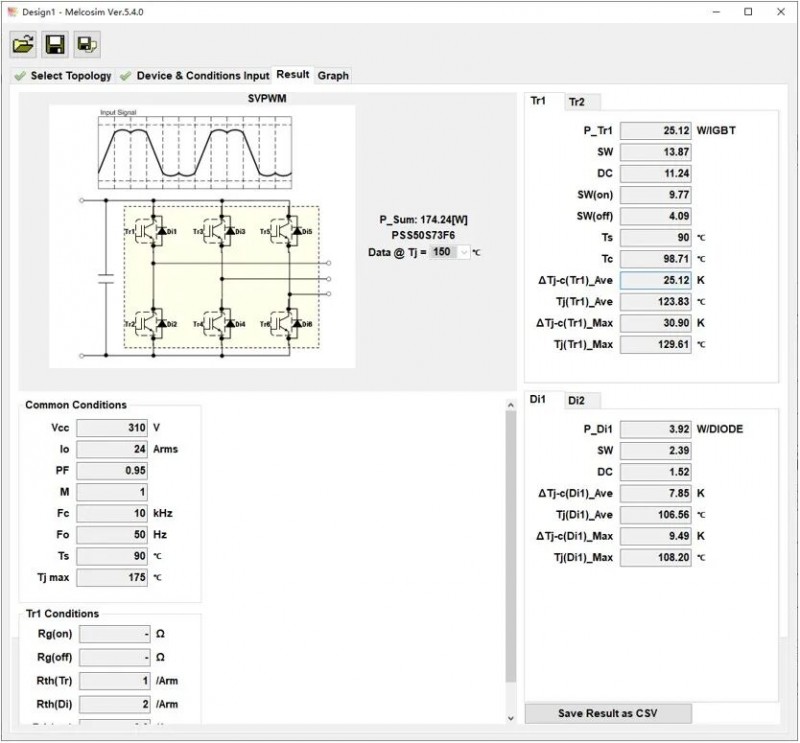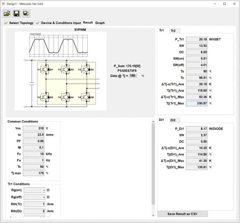 可能有些读者要说了,你都整了这么多了,模块用哪个啊?是时候介绍我们的主角了。接下来有请我们新一代明星,PSS50S73F6。它是三菱电机第7代小型DIPIPM™。在兼容以前同封装器件的基础上,又把最大结温提升到了175℃。让我们看看,在表2的条件下PSS50S73F6可以跑到多少电流。
