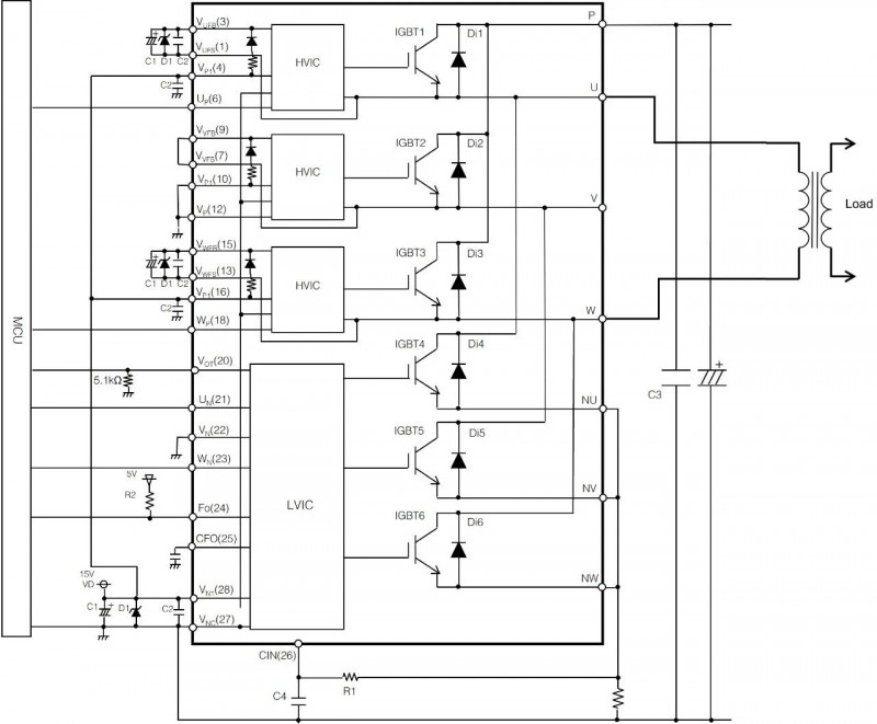 应该很多用户都注意到了,目前的DIPIPM™都是3相桥电路。如果我只需要两个桥臂做一个H桥的电源,应该怎么弄呢?今天我们就来聊聊这个问题。