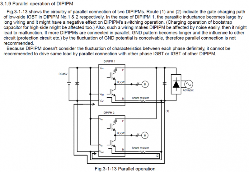 图5 应用手册中关于DIPIPM™并联的描述
