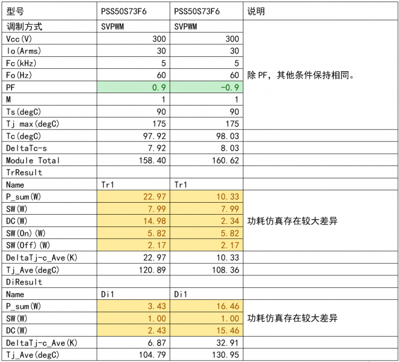那么PF为负值对DIPIPM™的仿真会带来什么影响呢?我们来看一组仿真结果,区别只有PF的正负。