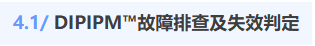 本章是DIPIPM™技术讲座的第4章,前面3章中分别介绍了DIPIPM™的发展历史、结构与功能、电路选型及应用。本章作为本次技术讲座的最后一章将侧重于介绍与DIPIPM™失效相关内容。DIPIPM™产品作为逆变电路的关键器件,当系统发生异常时,快速排查及判定模块是否失效及造成失效的初步原因,对于减少产线及市场失效率至关重要,可以大大减少因产品失效导致的损失。本节4.1将围绕如何查找DIPIPM™的故障及如何迅速对DIPIPM™是否损坏进行判定,以缩短DIPIPM™故障分析及解决时间。