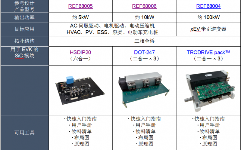 用户可从各参考设计页面下载与评估板相关的各种设计数据,并可从各产品页面下载可与参考设计配套使用的SiC模块产品信息。