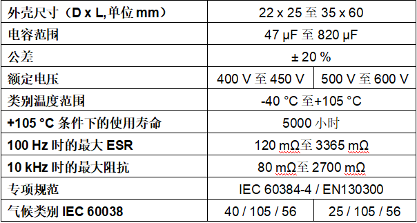 作为采用非固态电解质的有极性的铝电解电容器,该产品系列特别适用于开关电源中的滤波、稳压及DC-Link功能;终端应用涵盖充电机,BMS,电动汽车(EV)和混合动力汽车(HEV)的电机驱动、;工业电机驱动和空调设备;太阳能逆变器;医疗设备;不间断电源(UPS);以及焊接设备。